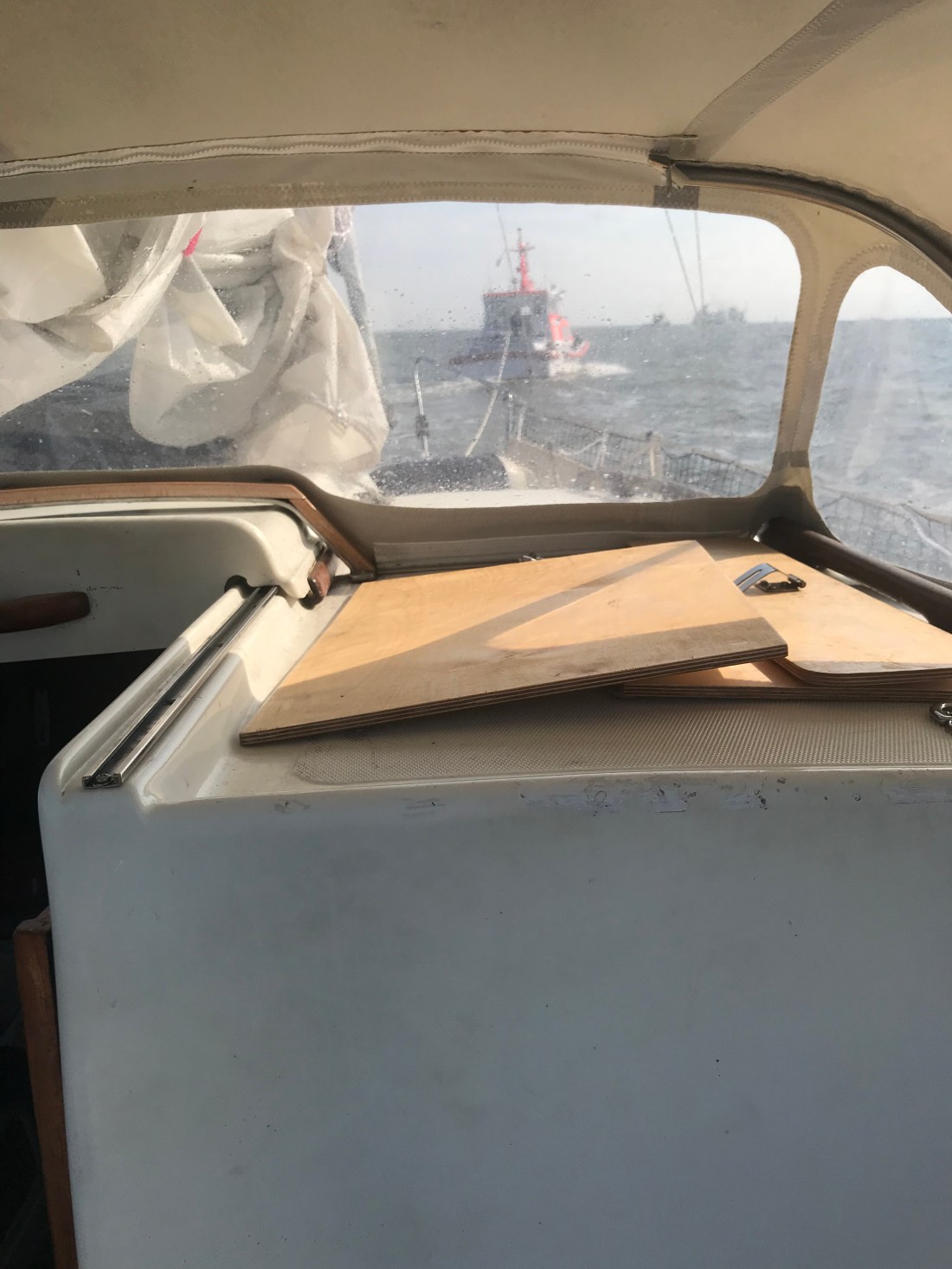 Plötzlich war der Motor aus, ließ sich nicht mehr starten. Das Boot kam quer zu den Wellen. Alle 20 Sekunden 30 grad oder mehr Schräglage. Hin und her. Jetzt rächte sich die Windrichtung gnadenlos. Keine Chance gehenan zu segeln. Zurück nach Cuxhaven? Ging auch nicht. Die Strömung war viel zu stark. Als ich die Genua reffen wollte verklemmte sich alles hoffnungslos. Da trieben wir also in der Nordsee vor uns hin. Keiner unter Deck der sich nicht schon mehrfach übergeben hätte. Das wäre noch Stunden weitergegangen. Ich rief also die Seenotretter.