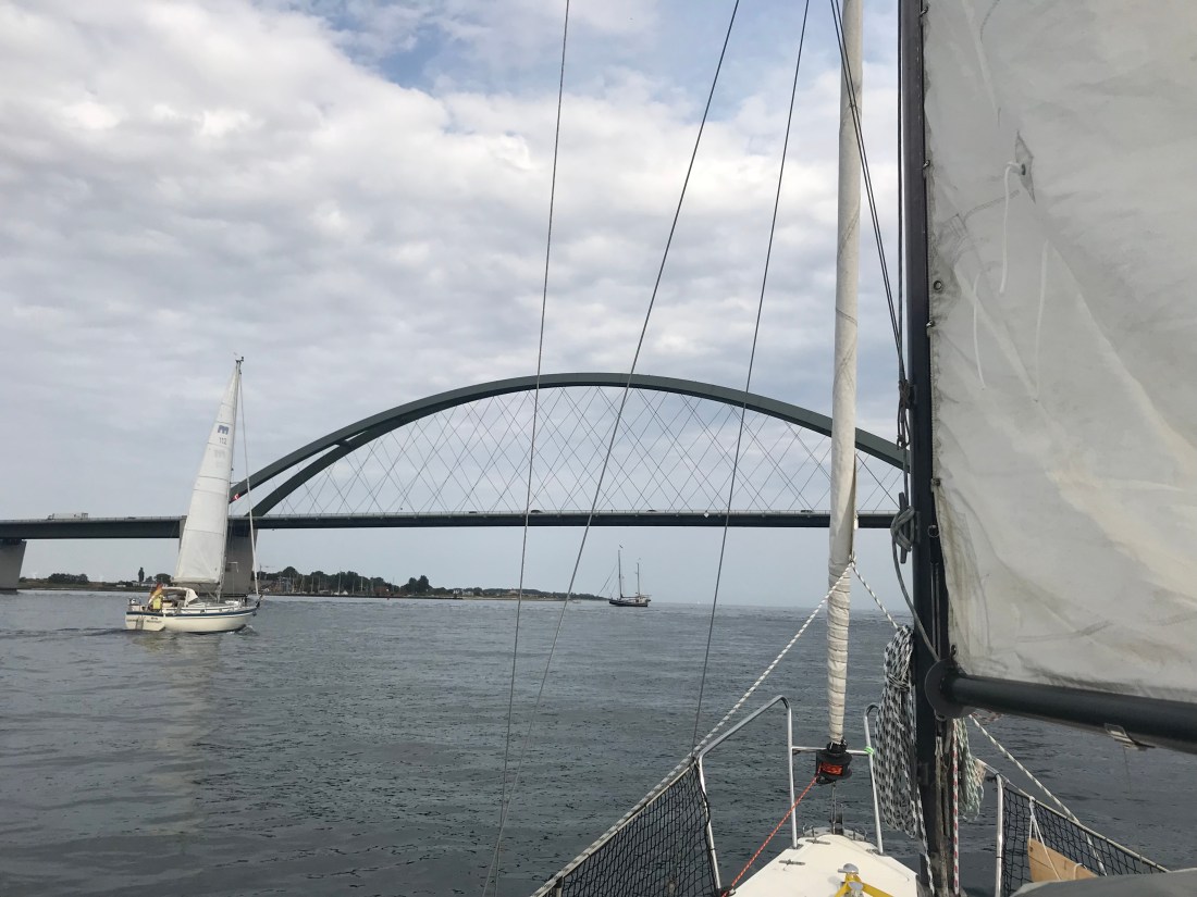 Nach einer schönen Woche, mit bestem Wetter, in Heiligenhafen, sollte es weiter Richtung Kröslin gehen. Meine Frau und die Kinder fahren vor und verbringen drei Tage in Rostock, in einem Hotel. Ursprünglich wollten wir noch nach Lübeck fahren. Pläne ändern sich und ich will versuchen von Heiligenhafen zumindest nach Darßer Ort zu kommen, vielleicht sogar bis Stralsund. Richtung Rostock würde ich nur im Notfall fahren, falls mit dem Boot etwas nicht stimmt, oder ich körperlich nicht durchhalte. Der Wetterbericht sieht vielversprechend aus, der Wind soll perfekt werden. Nicht zu stark, nicht zu schwach und aus Süd. Ich nehme mir viel Zeit für die Vorbereitung. Alles nochmal prüfen, Wasser und Diesel füllen, aufräumen und einkaufen. Für ein geplantes Nickerchen reicht am Ende die Zeit nicht mehr. Gegen 15:00 heißt es Leinen los. Die Aufregung ist riesengroß. Meine erste Nachtfahrt steht bevor und das auch noch ganz allein. Die Erfahrung der bisherigen Reise gibt mir Hoffnung das alles klappen wird. Schon bald liegt Heiligenhafen hinten mir und ich passiere die Fehmarnsundbrücke. Dahinter beginnt die Mecklenburger Bucht. Eine weite, offene Wasserfläche liegt jetzt vor mir. Ob ich es schaffe sie zu überqueren? Habe ich mir zuviel vorgenommen? Nein, ich werde es schaffen!