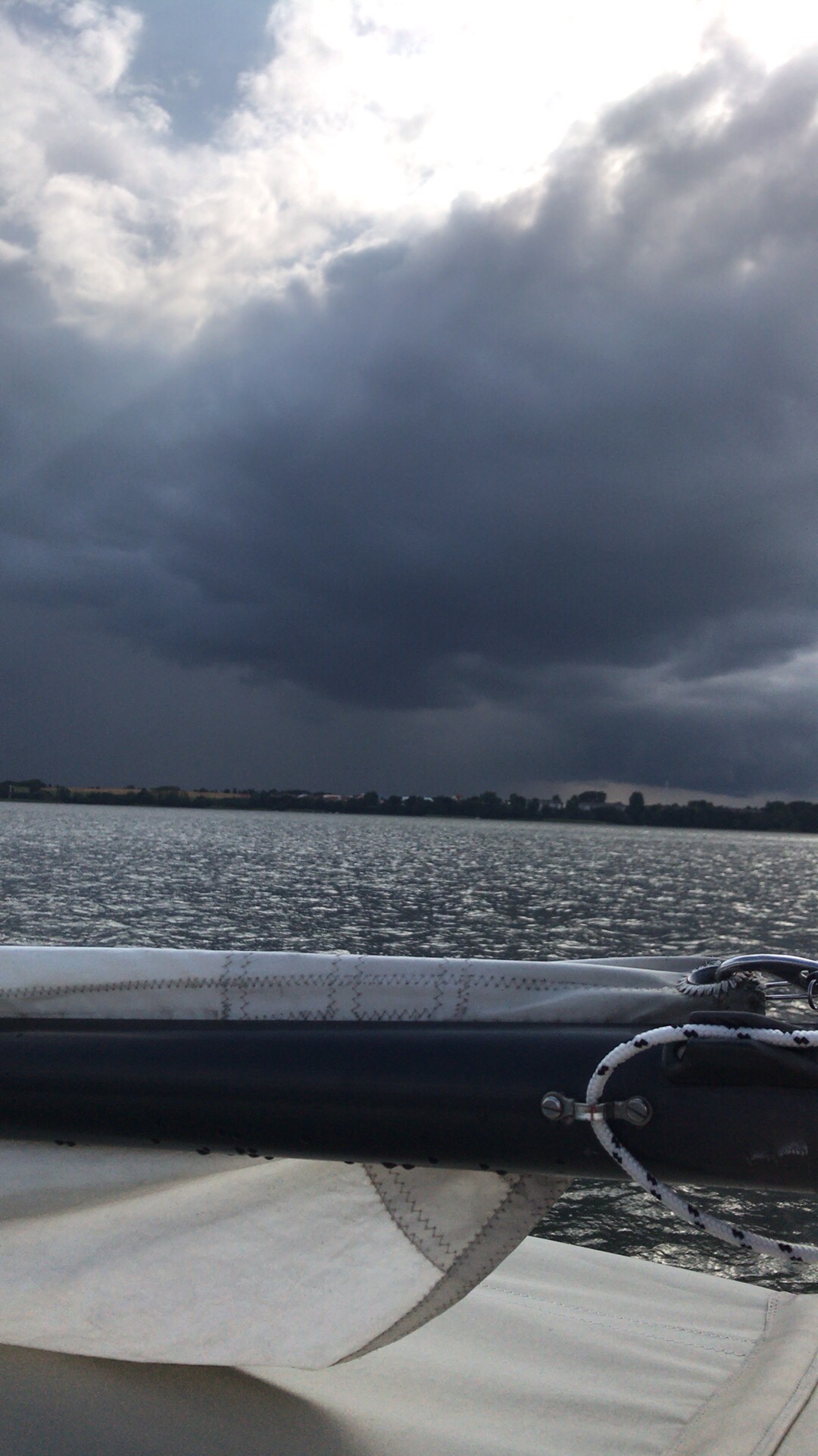 Ich möchte eigentlich weiter fahren, aber der Gedanke vor Stralsund zu Ankern gefällt mir. Ich entscheide mich für den Prohner Wiek. In der Ferne sieht man den Stadthafen und ist doch in der Natur. Das Wasser ist ruhig, kaum Wellen. Ein perfekter Abschluss dieser langen Tour. Morgen wird meine Frau mit den Kindern von Rostock nach Stralsund kommen. Ich bin zwar sehr müde, aber nehme mir die Zeit für Reparaturen. Das Großsegel soll reffbar gemacht werden und andere Kleinigkeiten. Erst gegen neun gehe ich in die Koje. Es wird ein komaartiger, traumloser Schlaf. Es ist egal, ich habe mein Ziel erreicht.