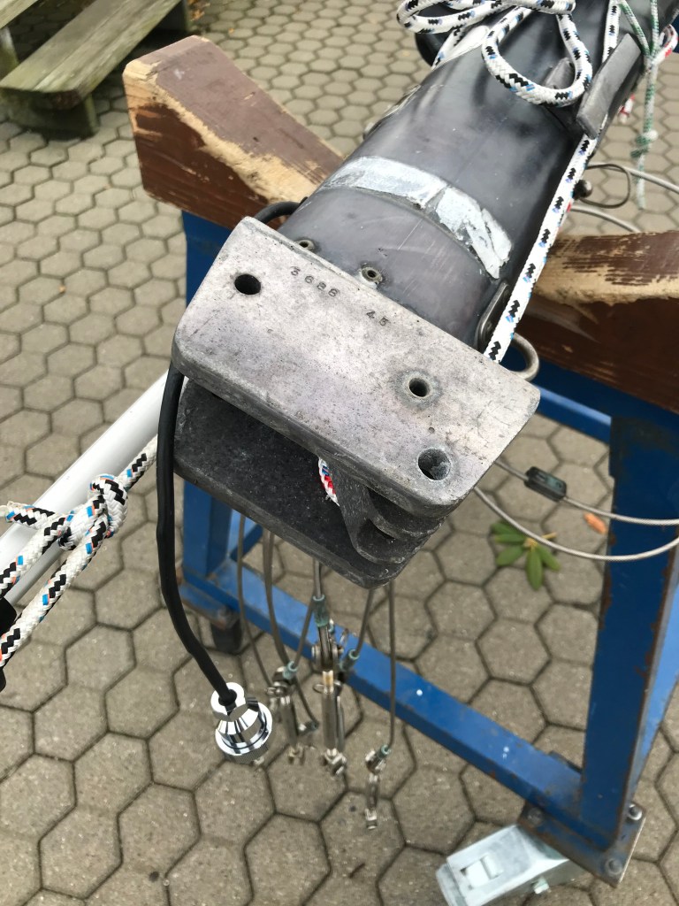 Der Mast ist noch gut in Schuss, braucht aber ein bisschen Liebe. Das alte Kabel zum Dampferlicht ist beispielsweise korrodiert, und muss ersetzt werden. Ein paar Beschläge und Blöcke waren kaputt und mussten ausgetauscht werden. Ein paar nette Erweiterung standen auch an.
